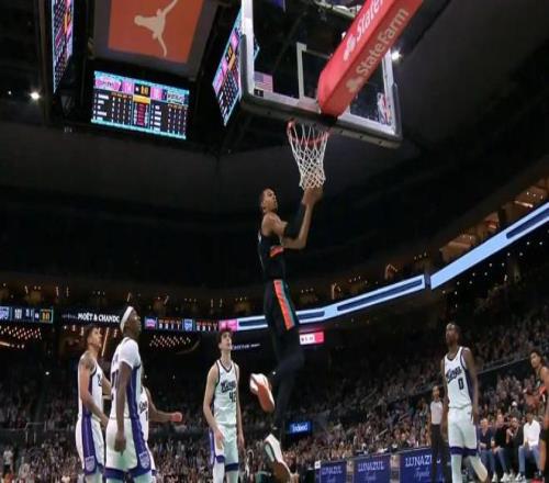 ——第四节剩下9分钟前,这一球最炸裂,文班亚马强突雷诺,面对无人敢协防、空无一人的国王内线,空中居然来了一个拉杆风车,这,是一个2米26球员能做出来的动作?