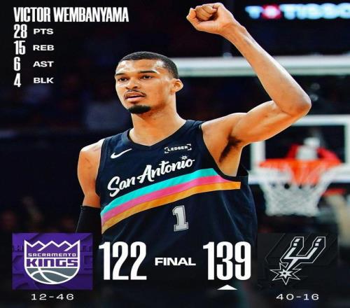 4、马刺能在季后赛走多远?马刺目前西部第二,但这支球队太年轻,阵中核心球员大多没有季后赛经历,文班亚马也是如此;
