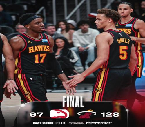 上一场常规赛,老鹰主场97-128惨败热火。