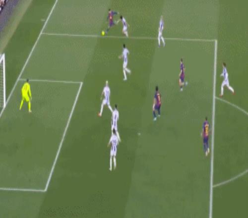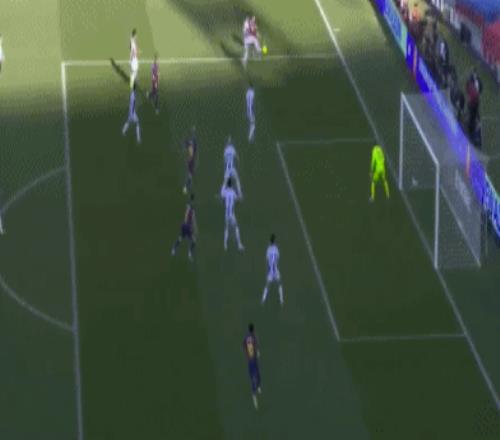 第32分钟,坎塞洛左路45°传中,落点恰到好处,德容插上垫射破门,巴萨还是扩大优势,2-0!