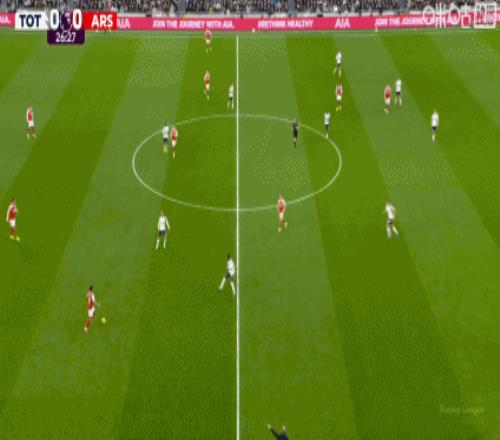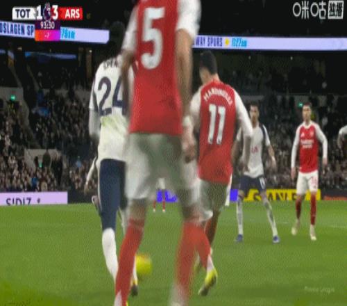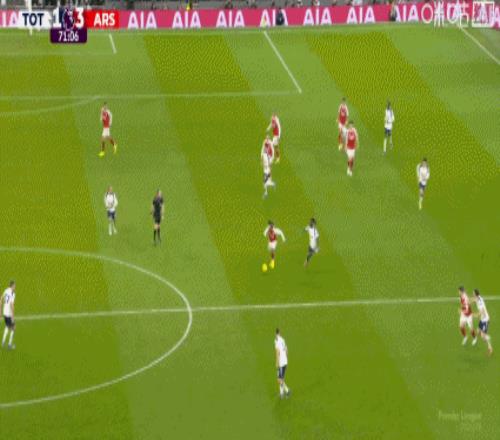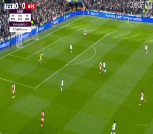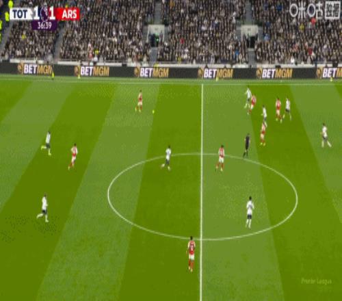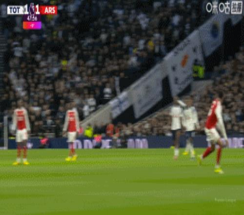 第34分钟,赖斯带球失误被断,穆阿尼破门!热刺1-1扳平阿森纳!