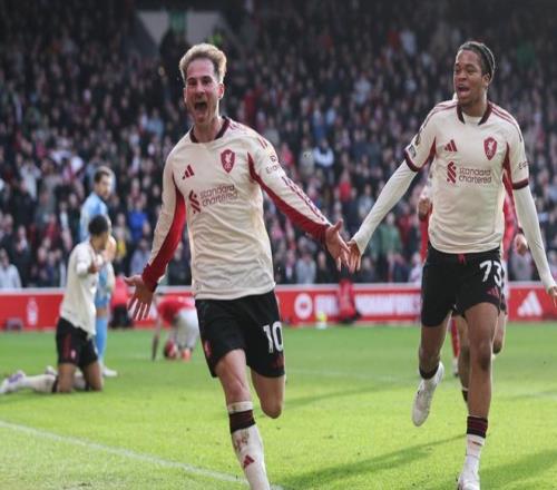 下半场易边再战。米伦科维奇的头球攻门稍稍偏出左侧立柱。第55分钟,琼斯的近距离射门被挡了出去。巴夸的远射偏出了球门。利物浦在第77分钟进行换人调整,恩古莫哈和基耶萨替补上场,换下萨拉赫和加克波。第86分钟,吉布斯-怀特的射门被挡出。随后,埃纳解围球击中麦卡利斯特身上弹进球门。但因为手球被吹掉。第97分钟,利物浦完成极限绝杀!麦卡利斯特门前抓住机会补射破门!真是神剧情!最终,利物浦1-0击败诺丁汉森林。