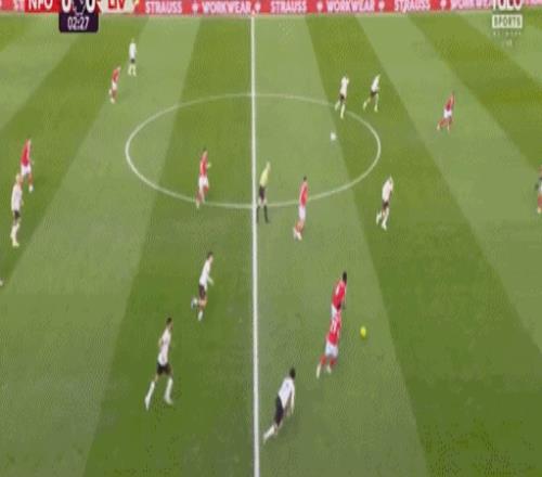 开场3分钟,琼斯中场回传失误,桑加雷送出过顶长传,奥多伊单刀挑射被阿利松扑出。