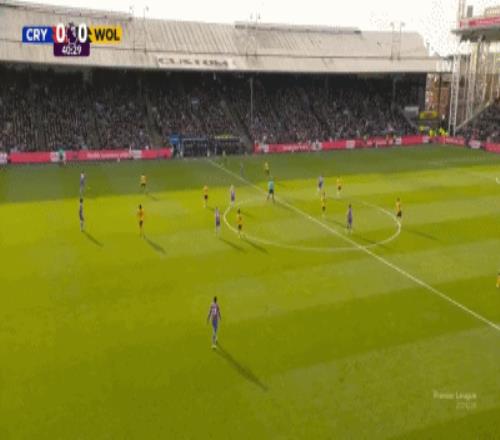 第90分钟,盖桑临近比赛结束破门,水晶宫1-0狼队