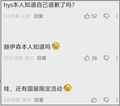 有网友专门去赫伊森社媒账号看了一下,根本无事发生,没有任何道歉内容。