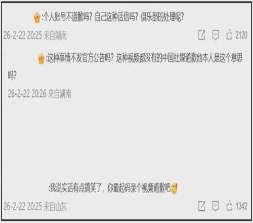 中国网友也不惯着了,纷纷表示不接受皇马俱乐部处理结果,所谓道歉动态下方评论区都沦陷了。