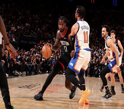 本场比赛中,火箭虽然输掉了比赛,但是球队的先发锋线新星塔里-伊森(Tari Eason)也算是尽力了。伊森全场出场34分43秒,投篮8中4,三分线外4中1,罚球2中2,得到了11分12篮板4助攻的两双数据,其中还包括了4个前场篮板,还有2次失误和3次犯规,正负值为-7。伊森在进攻端的出手次数非常有限,他在这种情况下其实还是抓住了有限的机会得到了不少分数的,也算是展现出了自己全面的得分能力了。不仅如此,他甚至在传球和策应方面的表现也是值得肯定的。伊森在防守端其实也是比较努力的,也是希望自己能够在防守端起到作用的,可惜最后时刻他也确实是没有办法防住杰伦-布伦森(Jalen Brunson)的巨星球。总体来看,伊森也算是表现不错了,可惜他还是没有办法帮助球队取得胜利。