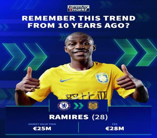 拉米雷斯(切尔西→江苏苏宁(已解散) 身价2500万欧 转会费2800万欧)