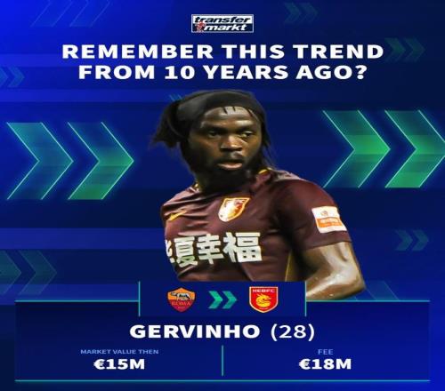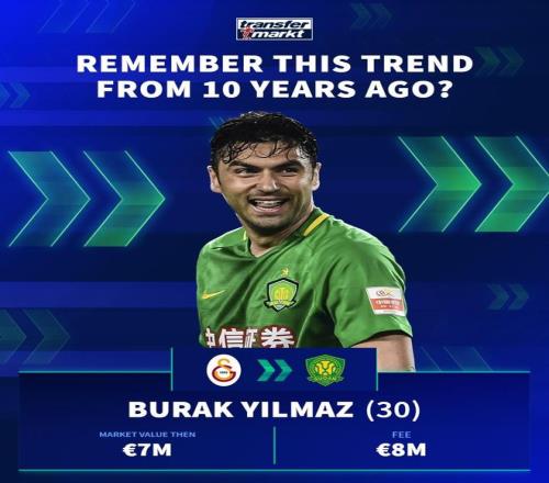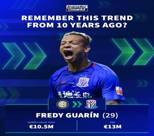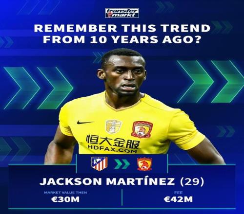 德国转会市场在社交媒体上分享了中超10年前的引援,并配文道:“十年前,一股席卷欧洲足坛的潮流!”