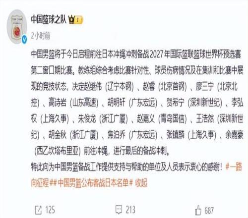 经过了长时间的集训,中国男篮征战世预赛的大名单正式公布。