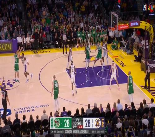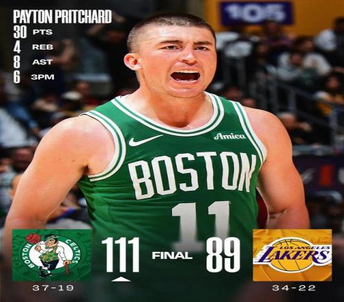 常规赛,凯尔特人客场111-89战胜湖人。