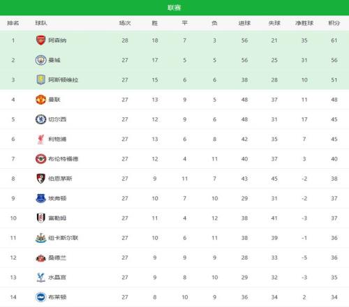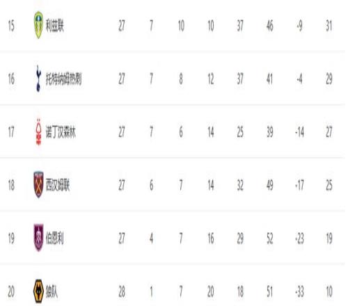 第四,仅落后第3名维拉3分,拿下欧冠席位越来越有戏。