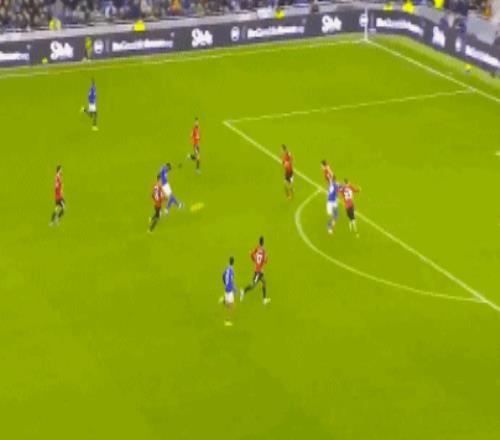 第30分钟,迪亚洛右路突破被布兰斯韦特拉拽,为曼联拼得一个定位球机会。B费45°传中被解围,达洛特禁区外停球顺势凌空抽射,直奔球门右上角,最终擦着立柱稍稍偏出。