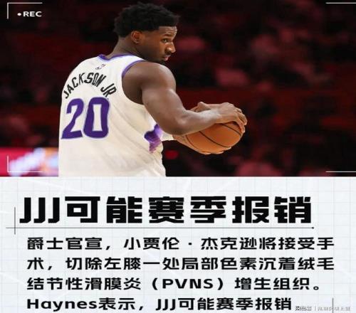 目前,小贾伦杰克逊已成功接受手术,移除左膝内一处局限性色素沉着绒毛结节性滑膜炎(PVNS)肿物。四周后,小贾伦杰克逊将接受伤情复查。在爵士仅剩25场比赛的情况下,本赛季我们恐怕很难再看到小贾伦杰克逊披挂上阵。所以,小贾伦杰克逊的赛季报销十有八九会发生!
