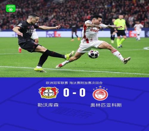 北京时间2月25日欧洲冠军联赛 淘汰赛附加赛次回合,勒沃库森对阵奥林匹亚科斯。最终比分勒沃库森 0-0 奥林匹亚科斯。两回合总比分勒沃库森2-0奥林匹亚科斯。