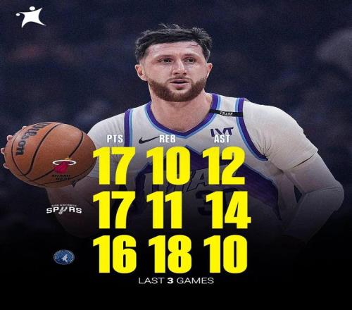 其中一月底,努尔基奇还曾连续三场拿下三双: