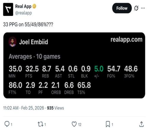 恩比德再一次用行动证明,伤病是唯一能够阻碍他的因素,只要能够健康登场,他依旧是这个联盟中最好的内线球员之一。