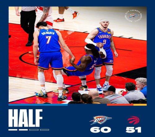 次节比赛,雷霆进攻火力升级首次单节得分35+,且限制猛龙比首节少得到13分,猛龙第二节单节不足20分。华莱士爆发前两节7中7(三分3中3)狂轰17+6+4,外加卡鲁索7中5得到14分,引领雷霆单节35-19净胜16分,上半场结束雷霆60-51反超猛龙。猛龙前两节比赛也有2人得分上双,巴恩斯11分与巴雷特13分。