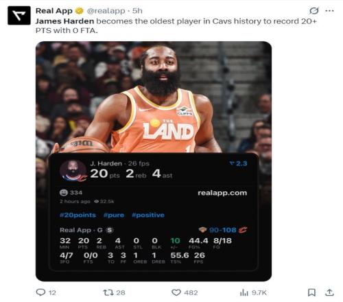 这场比赛哈登又成为队史首人,他成为骑士队史最年长单场拿到20+且0罚球的球员。他在上一场不敌雷霆的比赛中,完成100分+50助攻是骑士队史最快达成这一纪录的球员。击败黄蜂那场比赛后他成为NBA历史上唯一一个(当然也是队史第一位),五场比赛拿下90+40助且五连胜的球员,哈登拿到两次(一次费城,一次骑士)。