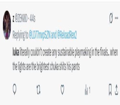 这场比赛卢卡-东契奇错失了一个绝佳的三分出手机会,他居然将这个空位机会传给了底角更远的詹姆斯,结果詹姆斯扭着身子出手不中。