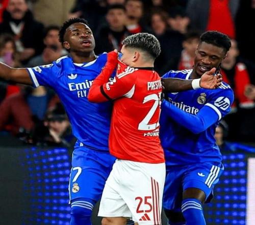 在明日凌晨的欧冠赛场将迎来一场焦点大战,欧冠附加赛第二回合皇马主场迎战本菲卡。虽说穆里尼奥亲手把皇马送进附加赛,很多人还是希望看到他时隔多年重返伯纳乌。而这一场比赛从首回合开始就已从战术博弈中升级为一场关于种族歧视、暴力动作被豁免与道德甚至规则双标的舆论审判。在首回合比赛中维尼修斯错失良机,姆巴佩也三次错过绝佳机会。下半场维尼修斯轰入精彩世界波,球员随后到角球杆附近庆祝,庆祝动作引起主队球员和球迷不满。