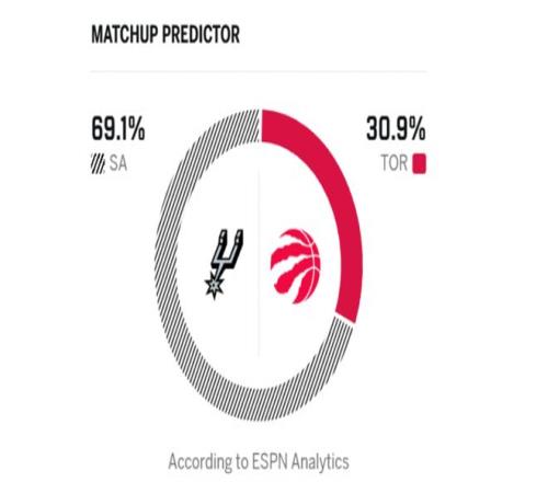 北京时间2月26日,NBA常规赛迎来猛龙与马刺的比赛!主场作战的猛龙,赛前以34胜24负的战绩暂列东部第五。昨天不敌雷霆,两连胜被终结,巴恩斯、英格拉姆均仅得15分状态平平,巴雷特砍下21分难救主。反观马刺近期状态火热,豪取9连胜,战绩41胜16负稳居西部第二。上一场客场击败活塞,文班亚马贡献21分17篮板,瓦塞尔轰下全队最高28分,卡斯尔16分11助攻,球队投出40投18中的三分命中率!综合来说,马刺在文班亚马的带领下目前状态正盛、心气高涨,猛龙当前实力与状态难抵其攻势。本场更看好马刺客场征服多伦多。美媒ESPN预测本场比赛,马刺胜率69.1%,猛龙胜率30.9%。