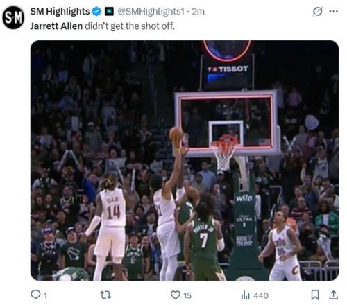 骑士球迷对阿伦的绝平超时非常难过,他表示NO~阿伦还没有把球跑出去,球出手前已经亮灯了就差那么一点点,我太难受了。