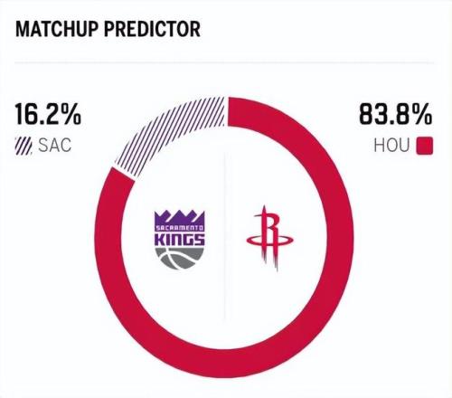 赛前,美媒ESPN对本场比赛进行了胜率预测,火箭队胜率依旧高达83.8%,国王胜率则仅有16.2% ,差距明显。
