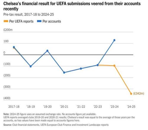 因此,切尔西最终公布的年度财报亏损,可能低于欧足联报告中的数字。但对于欧洲层面的财务监管而言,欧足联口径才是关键。
