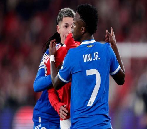伯纳乌南看台球迷在赛前高举“反对种族主义”横幅声援他。但随队出征的本菲卡球迷,在维尼修斯每次触球时都送上漫天嘘声。