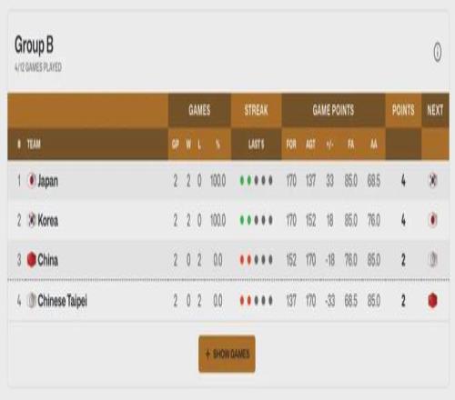 中国男篮与日本队、韩国队、中国台北队同处B组。截至本场赛前,中国男篮排名小组第三。