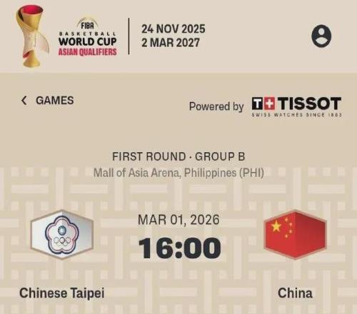下一战3月1日,中国男篮将在菲律宾马尼拉对阵中国台北队。
