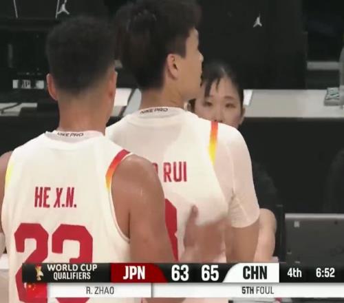 末节开场日本连续的突破篮下得分,朱俊龙命中一个三分球,赵睿造犯规两罚全中,赵睿抢断后贺希宁反击得手,富永启生高难度三分命中,裁判一次给日本球权随后给赵睿进攻犯规第五次,日本扳平后赵继伟关键三分,日本三分扳平郭士强暂停,胡金秋回来立马2+1,胡金秋在篮下连续得分打停日本,柯克前场篮板扣篮,赵继伟反击2+1,西田三分不中。