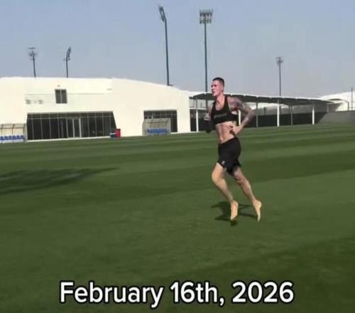 谢什科只穿着短裤和短款训练上衣,在中东地区进行体能储备。