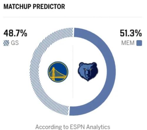 北京时间2月26日,NBA常规赛迎来勇士与灰熊的比赛!坐镇主场的灰熊,目前以21胜35负排在西部第11位,刚在主场输给西部垫底的国王,遭遇两连败,还亲手帮对手终结了16连败。那场114-123的失利中,灰熊六人得分上双,替补斯莫尔轰下全队最高的21分。大交易后的灰熊,本赛季剩余赛程主打锻炼新人、磨合战术,实力虽有限,但手感打顺了谁都难挡!反观勇士,赛前以30胜28负位列西部第八,身后的开拓者和快船正虎视眈眈。全明星周末后,他们打出1胜2负的战绩,既能主场赢下掘金,也能客场不敌鹈鹕。上一场输给鹈鹕,梅尔顿和穆迪都砍下20+,却没能挡住锡安带领的对手。今天的比赛,勇士的库里、巴特勒缺阵,格林此役也无法出战,实力大打折扣。赛前,美媒ESPN预测本场比赛,勇士胜率48.7%,灰熊胜率51.3%。