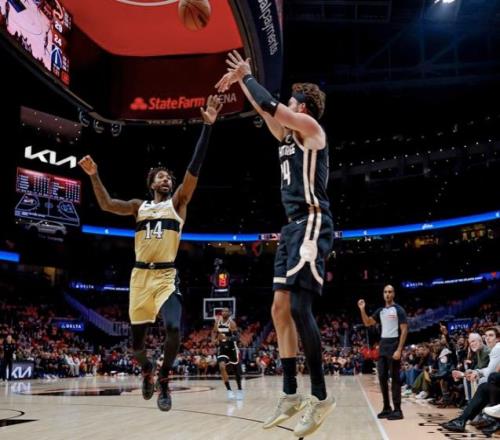 易边再战,两队发生一些争执,武克切维奇吃到技术犯规,特雷·约翰逊三分命中,随后两队接连打铁,库利巴利抢断暴扣,分差迫近至14分,基斯珀特突破打进稳住,库明加扣篮也进,尚帕尼三分命中,库明加连续突破拿分,兰代尔三分命中,老鹰重新拉开分差,基斯珀特篮下打进,三节打完老鹰98-80领先。