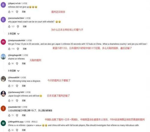 “中国队击败了裁判+日本+美国队,中国男篮全队都是本土球员,FIBA应该调查这场吹罚离谱的裁判”