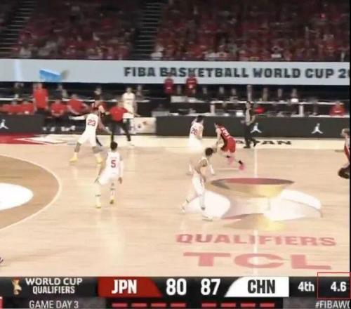 日本球员运球过了半场,时间还是4.6秒