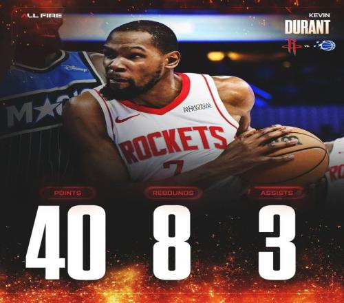 NBA 常规赛火箭客场对阵魔术的比赛落下帷幕,火箭以 113-108 险胜对手,上演 19 分惊天大逆转,第三节轰出 21-0 进攻狂潮直接扭转战局,37 岁杜兰特轰下 40 分缔造多项里程碑,新秀谢泼德成逆转奇兵,火箭继续稳坐西部第三宝座。