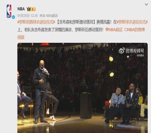 前段时间的罗斯球衣退役仪式,作为好兄弟的吉布森自然如期出席,两个老汉在演讲环节情不自禁老泪纵横。