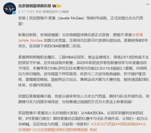 所以本来有多支CBA强队都有意将麦基收入麾下,最终如上所述北京队凭借城市属性与球队实力等方面脱颖而出,当然提供的薪资肯定也不差属于顶级范围。