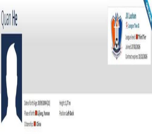 德转更新,天津津门虎门将李岳峰租借加盟厦门飞鹭,上海申花后卫和泉租借加盟江西庐山。
