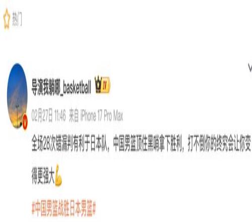 而网络上有相关的篮球博主复盘整场比赛,最终找出裁判有多达28次的错漏判,全都是有利于日本队的,如此不公平的吹罚在整个世界篮坛历史上都实属罕见。中国队主帅郭士强在赛后的发布会就强调这是一场赢得很艰难的比赛,言下之意非常清楚。好在最终中国男篮赢下比赛,没有让胜利溜走。