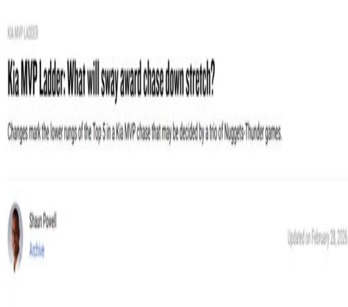 NBA官网MVP榜单更新!SGA持续力压约基奇高居榜首,坎宁安超东契奇强势杀入前3,火媒为杜兰特无缘前10公开鸣不平。