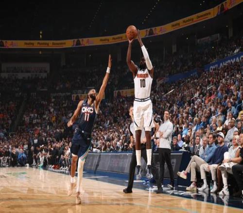 和往常相比,约基奇打雷霆的哨子待遇确实不怎么样,双方吹罚尺度都大,约基奇全场只有5个罚球,加上他复出以来的手感一直不怎么样,所以进攻端约基奇打得很一般。