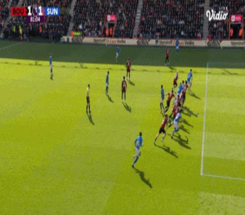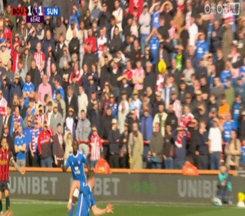 第63分钟,扳平比分,埃万尼尔松肩部进球,伯恩茅斯1-1桑德兰