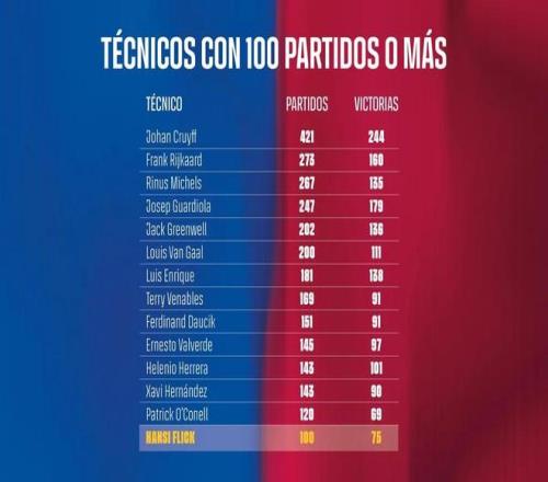 达成执教巴萨百场里程碑的主帅