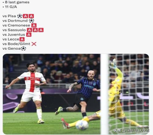 国米2-0击败热那亚,取得了意甲赛场的8连胜。