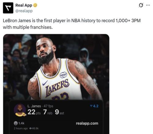 凭借这样的表现,詹姆斯成为湖人队史第二位命中至少1000记三分的球员,第一位是科比1827记。