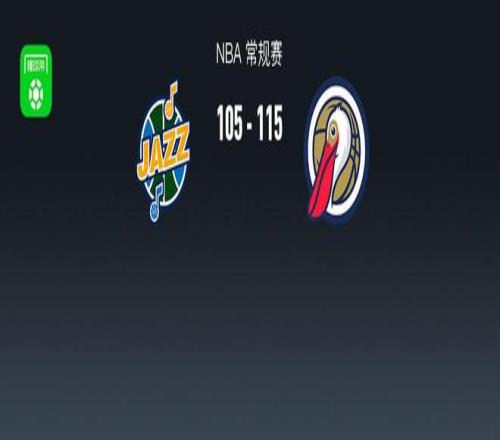 第四节爵士科利尔拿下12分,鹈鹕麦克格温斯拿下9分,最终爵士105-115不敌鹈鹕